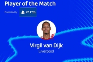 赛后范戴克也是当选全场最佳球员。