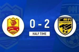 上半场补时3分钟,青岛红狮0-2广东广州豹。