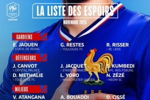 法国U21本月将参加2027年U21欧洲杯预选赛,先后对阵瑞士U21、法罗群岛U21。