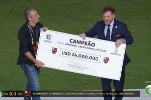 在赛后的颁奖典礼上,弗拉门戈直接获颁了2400万美元的支票奖金。