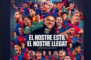 巴萨名宿伊涅斯塔更新社媒动态,转发巴萨的夺冠海报,配文:“向冠军们致以热烈祝贺!太棒了,巴萨!”