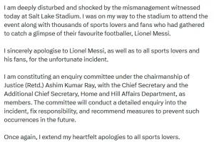 对于此事件,西孟加拉邦首席部长玛玛塔·班纳吉发文致歉: