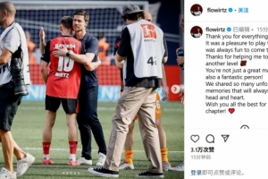 体育资讯5月17日讯 在个人社媒,维尔茨告别球队主帅哈维-阿隆索。