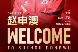 经友好协商并达成一致,球员赵申澳正式加盟苏州东吴足球俱乐部,为苏州东吴出战新赛季中甲及足协杯赛事。