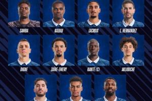 法国首发:桑巴、卡卢卢、拉克鲁瓦、卢卡斯·埃尔南德斯、迪涅、埃梅里、坎特、阿克利乌舍、谢尔基、杜埃、图拉姆