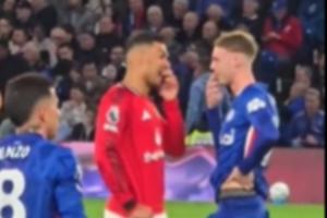 体育资讯04月19日讯 英超第33轮,切尔西0-1不敌曼联。有球迷拍到卡塞米罗与帕尔默在比赛中交流。