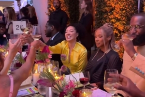 一位在场受邀嘉宾晒出了与詹姆斯夫妇同桌举杯共饮美酒的晚会现场动态。