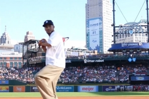 体育资讯7月1日讯 太阳球星布克现身MLB底特律老虎队主场,为家乡球队开球。