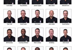 下图是上一轮的大名单,季后赛裁判组将在每一轮季后赛打完后都接受一次评估,以此来精简+选出下一轮的裁判。