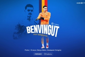 体育资讯7月15日讯 今天,安道尔FC在俱乐部官网宣布,巴萨青训门将阿隆-雅科比什维利租借加盟球队。