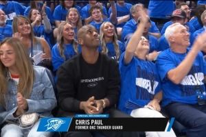 体育资讯5月23日讯 西决G2赛前,联盟给亚历山大颁发了MVP奖杯,保罗也来到现场支持前队友。