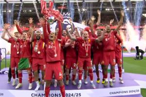 体育资讯05月26日讯 队长范迪克捧起利物浦第20座顶级联赛冠军奖杯,这也是利物浦第2座英超联赛冠军奖杯,有球迷在现场的第一次!