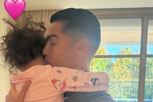 乔治娜社媒晒照分享日常生活,其中包括C罗抱孩子的照片。