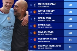 体育资讯10月6日讯 近日,德国足球转会网站盘点了在单一主帅治下球员进球榜,亨利在温格执掌下的阿森纳以打进175球傲居榜首。