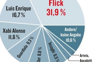 体育资讯6月2日讯 据《踢球者》报道,近期由216名德甲球员投票,选当今世界最佳教练,弗里克、恩里克、阿隆索分列前三。