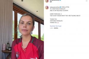 视频结尾,卡蒂娅表示,C 罗 “撼动世界”,并对那些评论者 “竟然相信自己说的鬼话” 感到 “悲哀”。