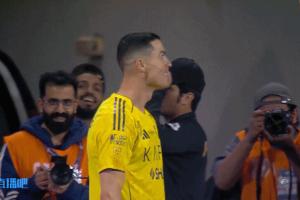 体育资讯11月24日讯 沙特联第9轮,利雅得胜利主场4-1战胜赛哈特海湾,本场比赛最后时刻,C罗打进一记精彩的倒钩进球。