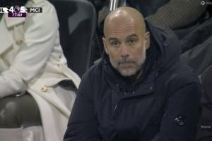 体育资讯12月03日讯 曼城vs富勒姆第78分钟,丘库埃泽双响,富勒姆将比分扳到富勒姆4-5曼城!镜头切给瓜帅,他表情有点懵了!