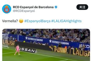 体育资讯05月16日讯 西甲第36轮,巴萨客场2-0击败西班牙人,提前2轮夺得西甲冠军。比赛第78分钟西班牙人后卫卡夫雷拉因击打亚马尔被直红罚下,西班牙人官方社媒质疑了这一判罚。