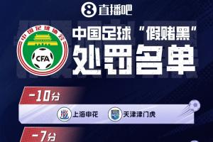 体育资讯01月30日讯 昨日上午,足球行业“假赌黑”专项整治行动的相关会议在北京召开。中午12点左右,足协公布处罚,13家职业俱乐部被罚分,其中中超9队,申花、津门虎被罚10分。
