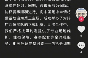 此次合作中,我们严格按照约定提供了专业场地维护、住宿保障、赛事配套等全流程服务,相关凭证完整可查——包括冬训期间所有入住人员的登记信息、场地使用记录、服务确认单等原始资料,而足协杯第三主场的赛事安排,亦有中国足协官方备案文件及多家权威媒体报道佐证,合作事实清晰、权责关系明确。