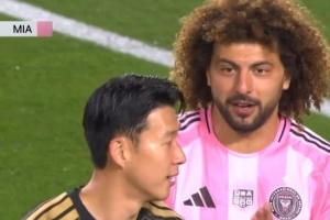 迈阿密国际后卫法尔肯希望与孙兴慜互换球衣,他在比赛中提前向孙兴慜提出请求,孙兴慜竖起大拇指表示同意。