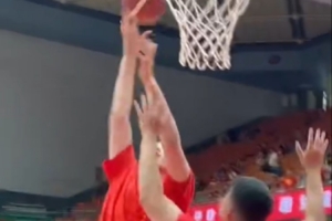 本场比赛也将是女篮新星张子宇在家乡济南的成年国家队首秀,赛前,张子宇进行投篮热身,背身要球后顶开防守转身上篮打进。