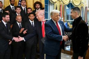 体育资讯03月06日讯 今日,梅西率领迈阿密国际造访白宫,特朗普发表讲话时谈及梅西和C罗。