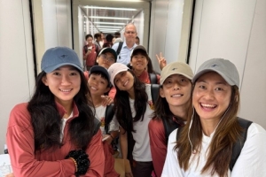 今天,中国女足出发前往1/4决赛比赛地珀斯,记者艾婷婷晒照,女足球员们面带笑容乘机前往珀斯。