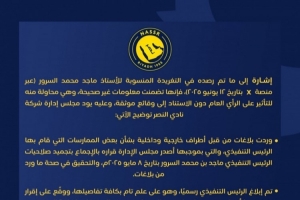 俱乐部董事会一致通过决议,解除了马吉德-本-穆罕默德-萨鲁尔俱乐部CEO的职务,该决议于2025年5月8日生效。董事会确认,萨鲁尔自担任该职位以来,未能履行其职责,未能满足俱乐部战略和运营需求,也未能完成多个关键项目、实现预期目标。