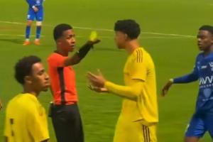 体育资讯03月14日讯 据沙特当地媒体报道,C罗的大儿子迷你罗最近在参加利雅得胜利U15的一场比赛时,在被换下场的时候吃到黄牌。
