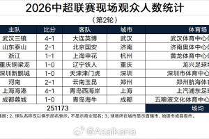 场均 31397人 列中超历史单轮现场观众人数第4位