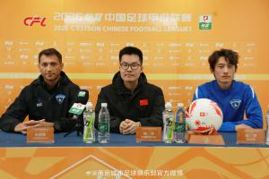 中甲第2轮南京城市主场迎战延边龙鼎可喜安。今天下午,南京城市主教练罗德尼携队员孟振出席赛前新闻发布会。