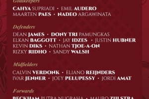 附印尼队本期24人大名单: