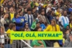 赛中,现场球迷高声齐喊未能入选本场大名单的内马尔的名字。