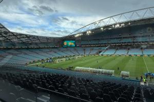 体育资讯03月27日讯 14:00FIFA系列赛,中国男足对阵库拉索。赛前半小时,记者马德兴在现场晒照,双方球员正在热身,但球场几乎没有球迷。