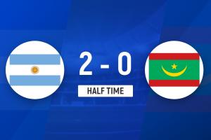 上半场补时1分钟,阿根廷2-0毛里塔尼亚。