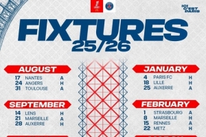 体育资讯6月28日讯 巴黎25-26赛季法甲赛程公布,首轮8月17日客战南特,末轮明年5月16日客战巴黎FC。