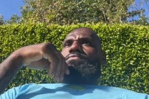 詹姆斯晒出一段自拍,他坐在自家后院听歌放松心情,跟随音乐节奏摇头晃脑,享受假日闲暇时光。