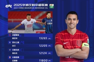 体育资讯7月1日讯 中超官方公布第16轮跑动距离榜,蓉城球员周定洋再度登顶,他本赛季已经7次领跑当轮跑动榜。