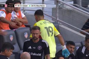 体育资讯07月17日讯 美职联迈阿密国际客战辛辛那提FC。比赛第25分钟,迈阿密门将乌斯塔里出击拉伤,被替补门将诺沃替换下场。
