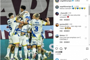 迪马利亚回归罗萨里奥中央以来连续两场比赛打进点球,他在社交媒体上晒出比赛照片,庆祝球队取胜,配文:“加油罗萨里奥中央!”