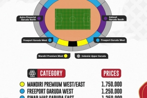 印尼队官方于今天公布对阵中国队的比赛票价,共分为4档,分别是30万印尼卢比(约131元)、60万印尼卢比(约261元)、125万印尼卢比(约545元)以及175万印尼卢比(约762元)。
