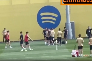 体育资讯5月14日讯 据《每日体育报》报道,在今日巴萨的队内训练中,库巴西被莱万无意中击中右膝,导致关节内收后倒地,随即接受队医治疗。