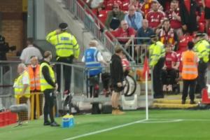 但球场中的警察行动非常迅速,有球迷拍到,这位轮椅球迷很快被要求离场,他在众人的注视下灰溜溜的被志愿者推出通道。