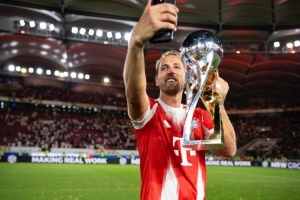 体育资讯8月17日讯 德国超级杯比赛,凯恩破门,帮助拜仁2-1击败斯图加特,捧起冠军奖杯。