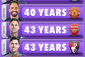 体育资讯8月17日讯 Score90统计了五大联赛球队在任主帅的年龄,并按照不同的联赛列出最年轻主帅排名。