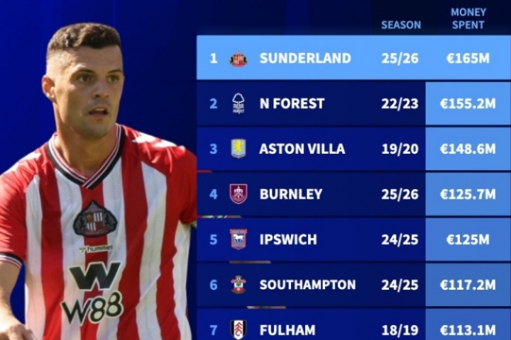 体育资讯08月18日讯 英超第1轮,“黑猫”桑德兰3-0击败西汉姆,取得回归英超首胜。德转官方晒出数据,桑德兰今夏花费1.65亿欧,成为历史上花费最多的英超升班马。