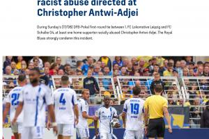 体育资讯08月19日讯 德国杯首轮,沙尔克04客场1-0击败地区联赛球队莱比锡火车头,沙尔克球员阿杰伊赛后表示,自己遭到了现场球迷的种族歧视。