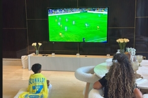 C罗伴侣乔治娜更新社媒动态,晒出孩子们通过电视观看比赛的照片。